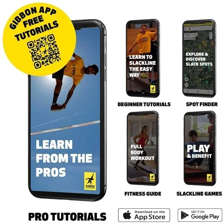 - Gibbon Slacklines Jibline XL Treewear Set, zwart, 25m (20m lijn + 2x 2,5m ratelband), jumpline, trickline, advanced, zwarte treewear, breedte 5cm, perfecte vrijetijdsbesteding.