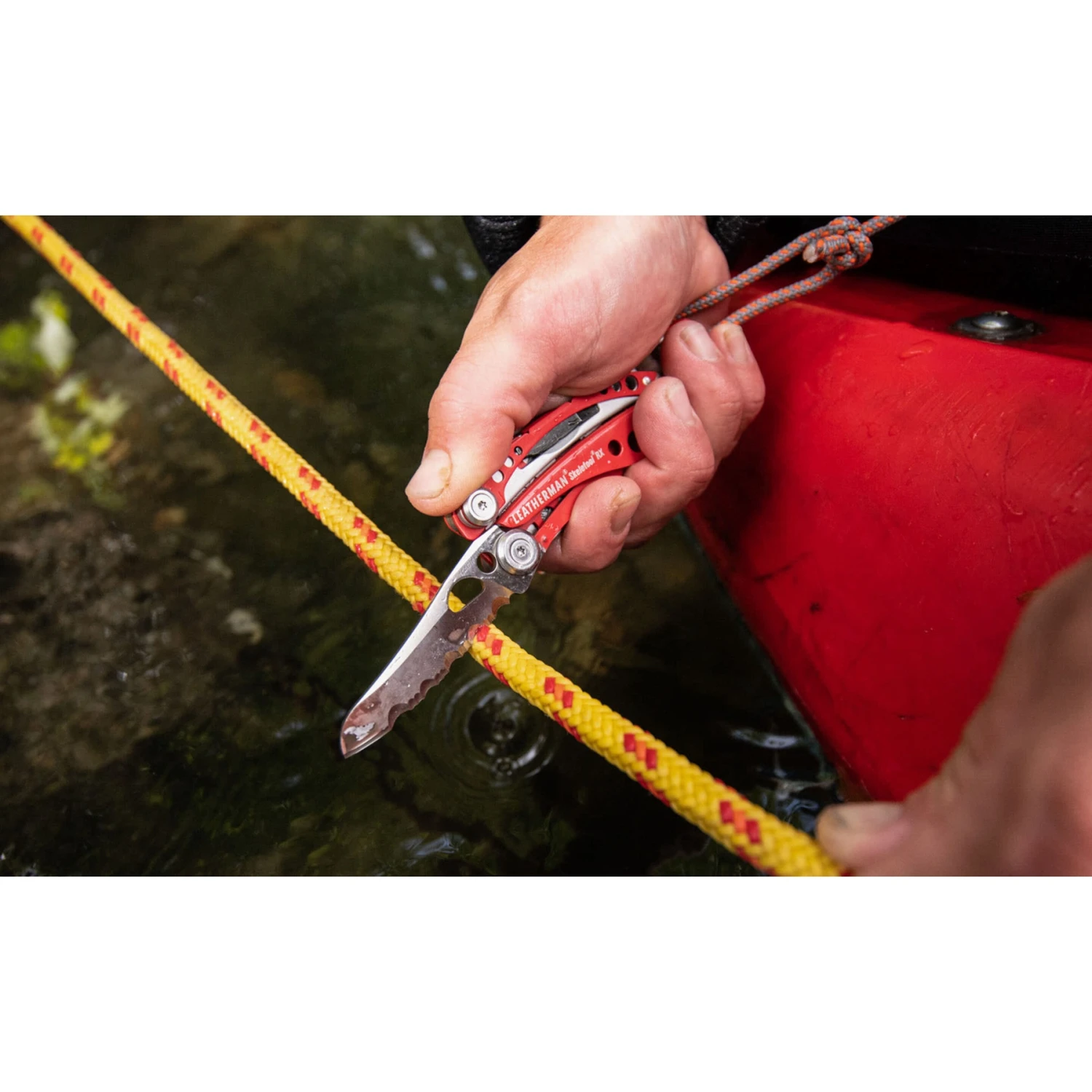 Speciale gereedschappen zoals het scherpe kartelmes van 154CM met een groter snijoppervlak voor het snijden van kleding of vezelig materiaal en de glasbreker met hardmetalen punt maken de Skeletool RX tot een onmisbaar gereedschap voor speciale toepassingen.